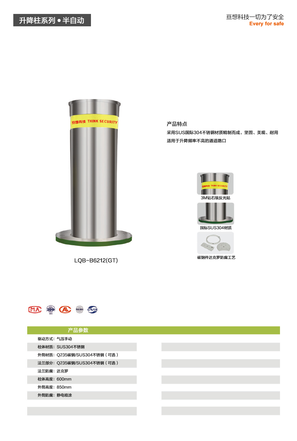 • 柱体材质:SUS304不锈钢
